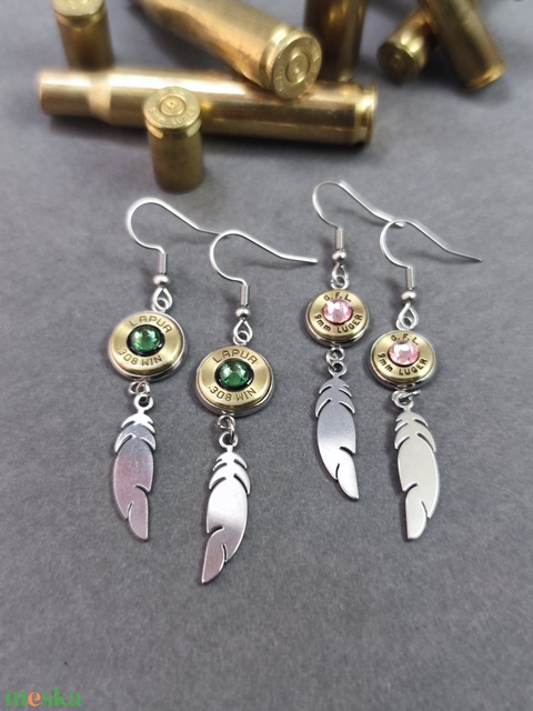 Töltény fülbevaló Tollas csüngős
