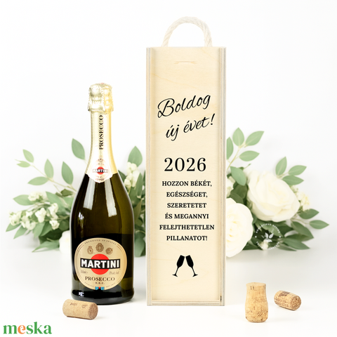 Ha ajándékot keresel az ünnepekre, ez a személyre szóló boros vagy pezsgősüveg tartó doboz egy tökéletes választás, hogy örökre emlékként megmaradjon. A szöveg módosítható ezért más alkalomra is választhatod, mint pl. születésnap, évforduló, ünnepség vagy akár tanú felkérő.