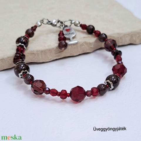 - Anyaga: ásvány, gránát, swarovski kristály, cseh csiszolt gyöngy, nemesacél gyöngykupak, nemesacél szerelék, nemesacél charm, charm