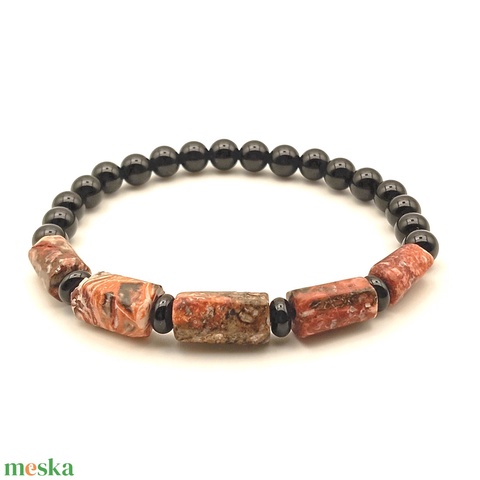 Leopárd jáspis - Ónix 6 mm karkötő