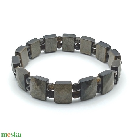 Ezüst obszidián kocka kétsoros karkötő