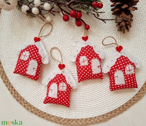 Havas házikók-piros karácsonyi country dekoráció, díszek