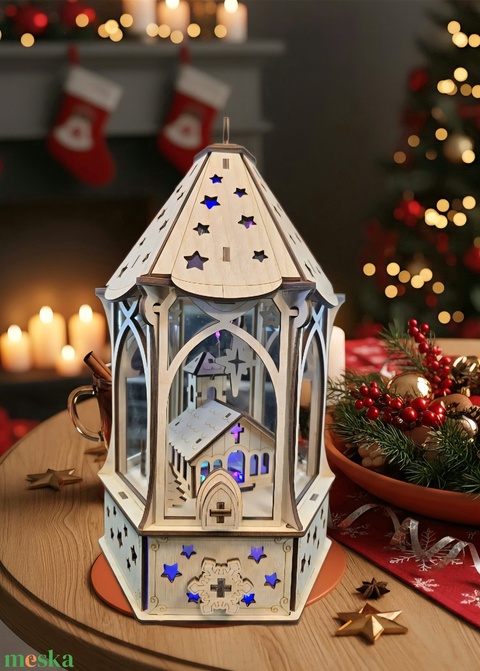 Karácsonyi lámpás templommal