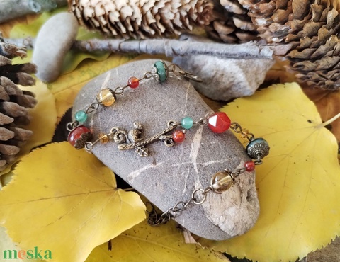 karneol, aventurin, citrin, üvegyöngy, mókus medál, lánc, szerelékek