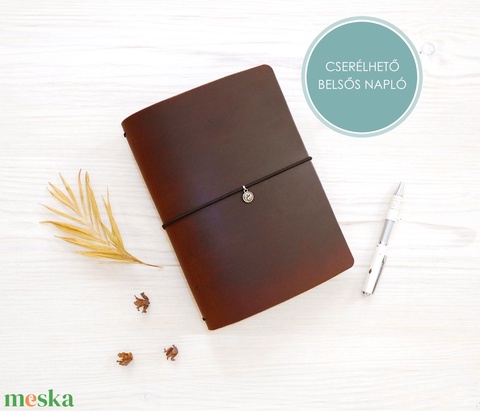 KALANDOR - Cserélhető füzetes valódi bőr borítású kézműves utazónapló A5 méretben - A füzeteket nem tartalmazza a csomag