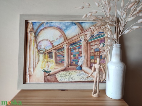 "Alexandriai könyvtár - ahogy elképzeltem" - Akvarell festmény papíron