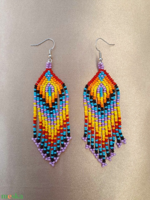 Hosszú lógós gyöngy fülbevaló, indián stílusú fülbevaló