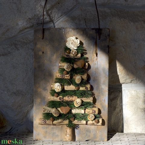 Karácsonyi - téli ajtódísz parafadugókkal LED világítással