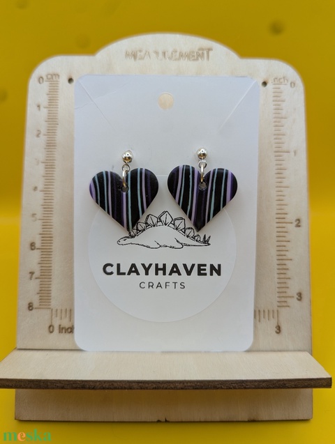 Kézműves fülbevaló polimer gyurmából (polymer clay) - szív - 043