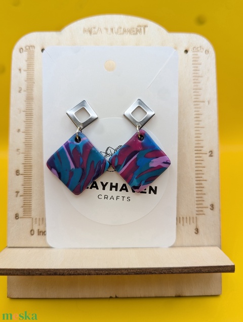 Kézműves fülbevaló polimer gyurmából (polymer clay) - négyzet - 046