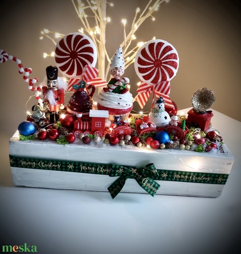Játékország LED-es Világító adventi dísz, diótörő, kis vonat asztaldísz, karácsonyi dísz