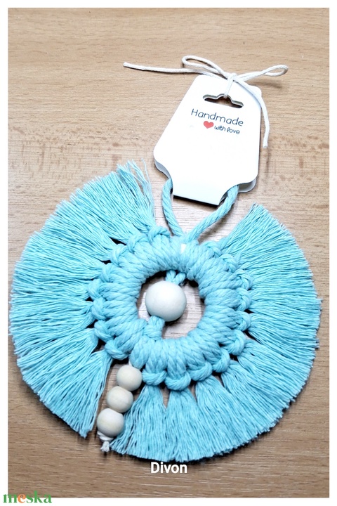 - Anyaga: makramé fonal, fakarika, fagyöngy