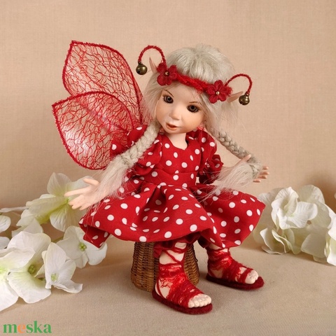 Piros pöttyös, copfos porcelán tündérke - KATINKA