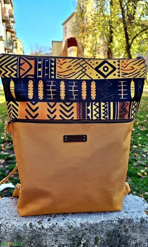 - Anyaga: cipzár, fém csatok, vízálló polieszter, pamutvászon