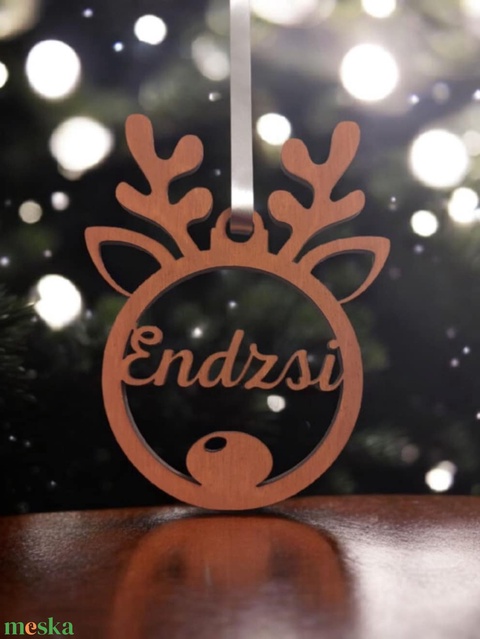 Rénszarvasos karácsonyi dísz – Egyedi névvel