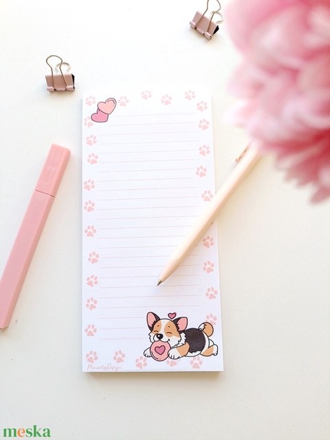 Cuki corgi kutyás jegyzettömb mancsnyomokkal
