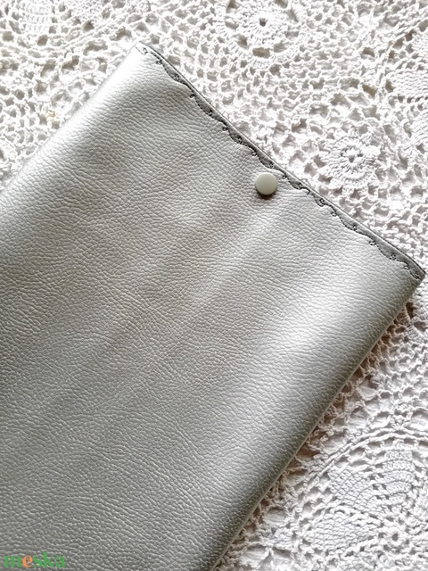 Ezüst színű textilbőr könyvtok, tablet vagy e-book tok