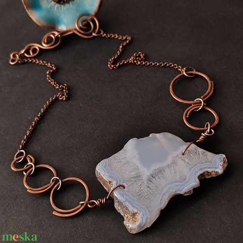 vörösréz drót, vörösréz lánc, kalcedon szelet