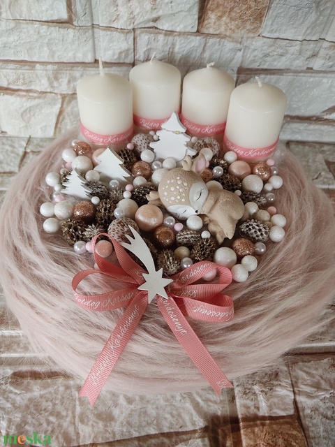 Alvó őzikés adventi koszorú, ledes 22 cm