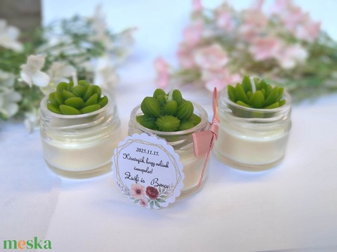 Kövirózsás köszönetajándék gyertya köszönetajándék köszönet ajándék vendégeknek