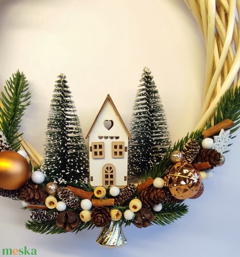 Karácsonyi ajtódísz házikóval