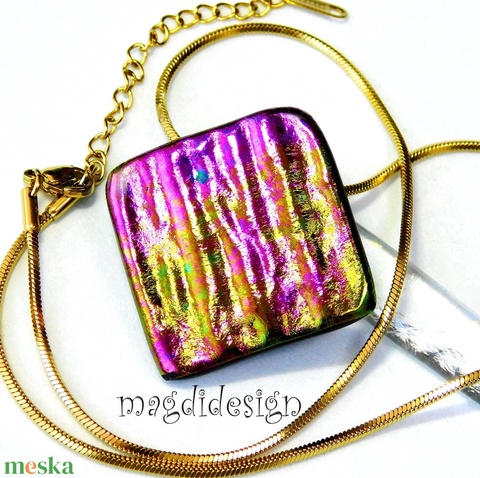 Zöld arany pink selyemcukor üvegékszer nyaklánc
