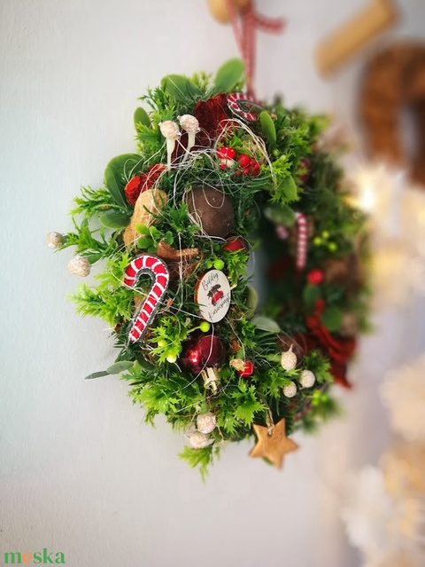- Anyaga: műnövény, százaztermés, karton, bogyók, karácsonyfadíszek, masni