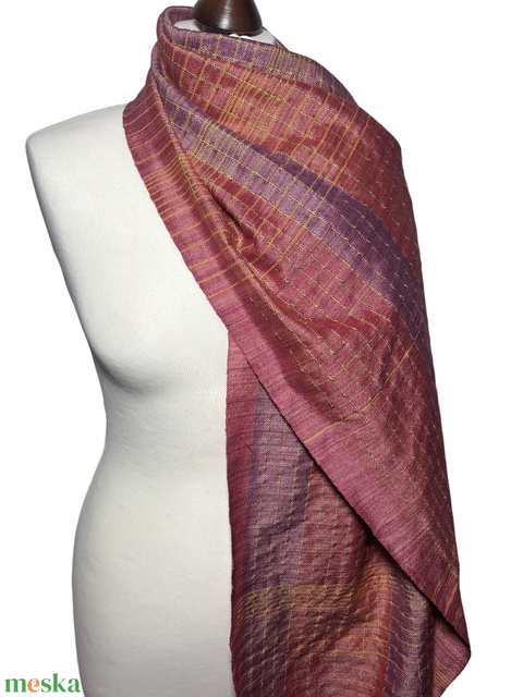 Kézzel szőtt Rózsaszín - Mályva Selyem Kendő