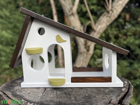 Madáretető kerek ablakos / fehér-zöld-dió/