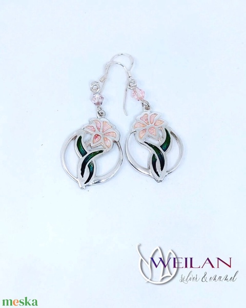 Flora - Liliom ezüst tűzzománc fülbevaló - rózsaszín