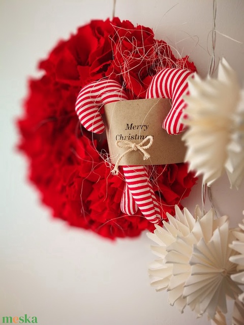 Textil karácsonyi kopogtató cukorpálcával - piros, 22 cm