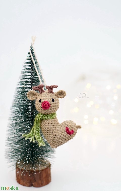 ZsebAmara - Horgolt szív-rénszarvas, karácsonyi dísz