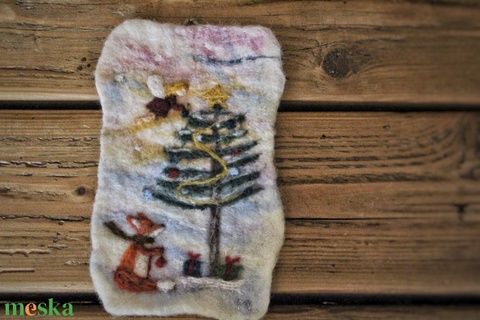 Ez a nenezelt mesekép egy igazi természetes ajándék és dekoráció az ünnepekben. Minden részlete kézzel készült, magas minőségű gyapjúból. Az alapot gondos munkával, vizes nemezeléssel készítettem, a témát pedig tűnemezeléssel alkottam meg rá. Mérete kb. 15x20cm - ez az alap kigyúrása közben változhat a gyapjú tágulása, majd zsugorodása miatt. A kép falra akasztható.