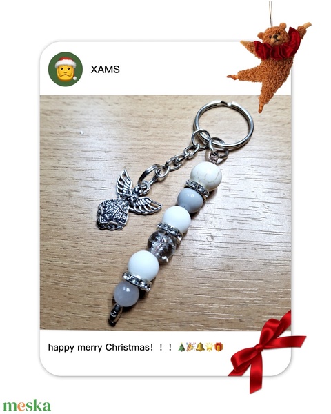 Angyalka medálos karácsonyi ajándék kulcstartó