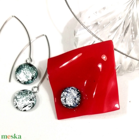 Ezüstös piros trendi ékszerszett, ajándék névnapra, születésnapra.