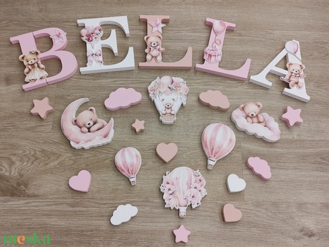 Rózsaszín macis dekorbetű szett, választható névvel, színnel, kézműves, dekoráció, név, betű, gyerekszoba, dekor betű