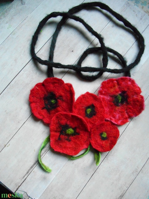 pipacsos nyaklánc /nemezelt nyakék/ pipacsos / nemez