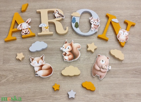 Erdei állatos dekorbetű szett, választható névvel, színnel, kézműves, dekoráció, név, betű, gyerekszoba, dekor betű