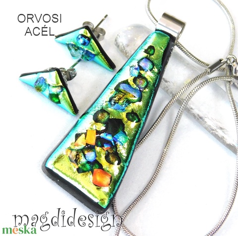 Zöld köves színjáték dichroic üvegékszer szett nyaklánc fülbevaló