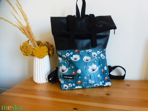 Virágos feket roll up/ roll top hátizsák