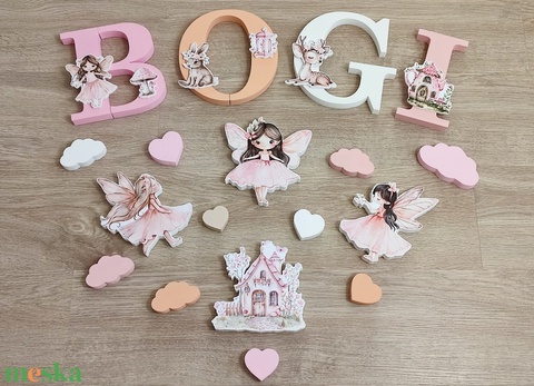 Tündéres dekorbetű szett, választható névvel, színnel, kézműves, dekoráció, név, betű, gyerekszoba, dekor betű