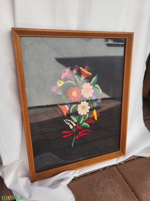 Kézzel hímzett falikép_virágcsokor