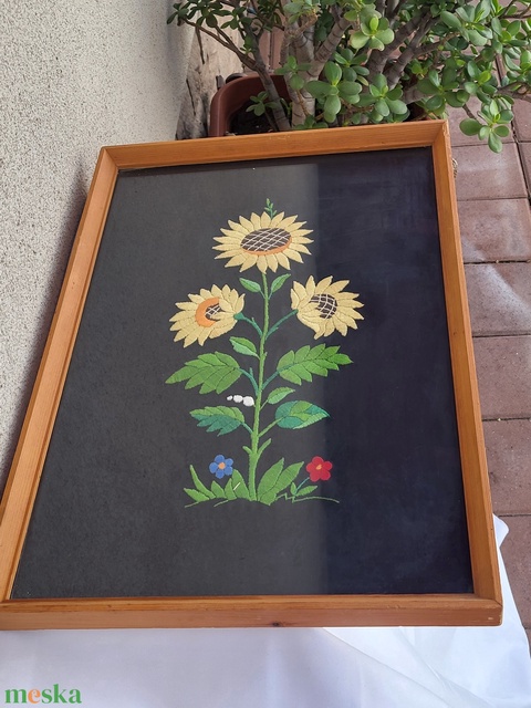Kézzel hímzett falikép_napraforgó
