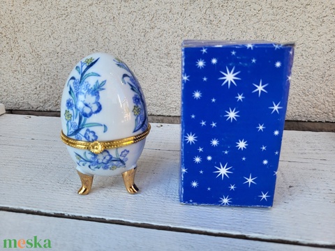 Porcelán ékszertartó tojás_kék