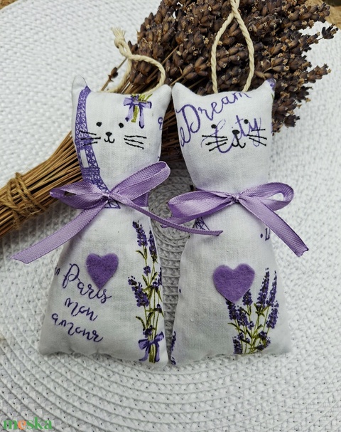 Levendula-cicák párban, illatzsákok, illatpárnák- 2db, levendulavirággal töltve