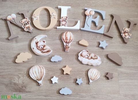 Macis díszítésű dekorbetű szett, választható névvel, színnel, kézműves, dekoráció, név, betű, gyerekszoba, dekor betű