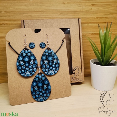 Kék - csepp alakú pontozott ékszerszett