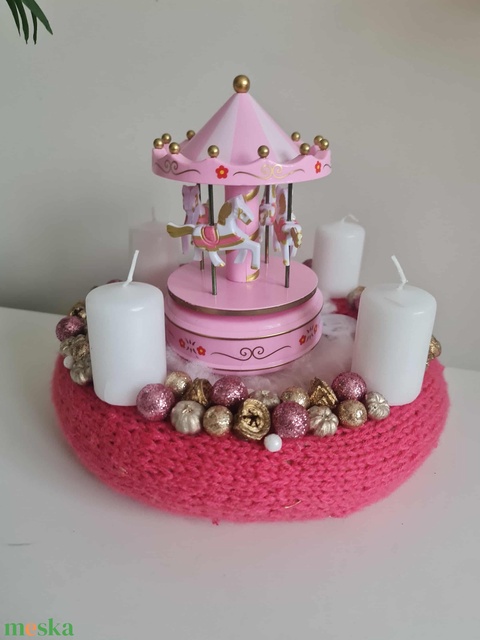 Zenélő körhintás, LED világítással készült adventi koszorú