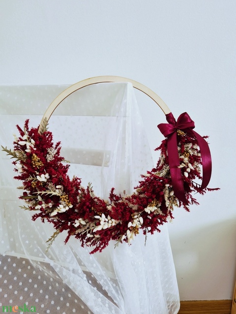 - Anyaga: szárazvirág, fa alap, szatén szalag