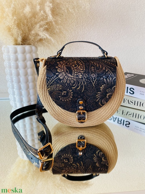 Különleges női táska, valódi bőr kiegészítőkkel